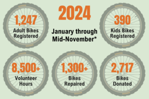 * We’ve given away over 300 bicycles throughout the year to groups for adults and